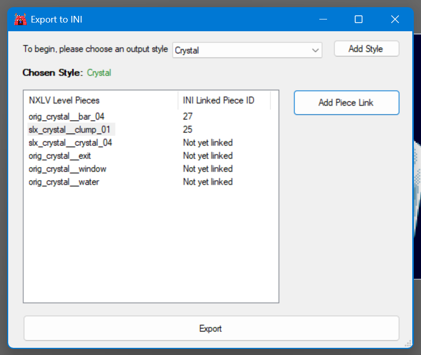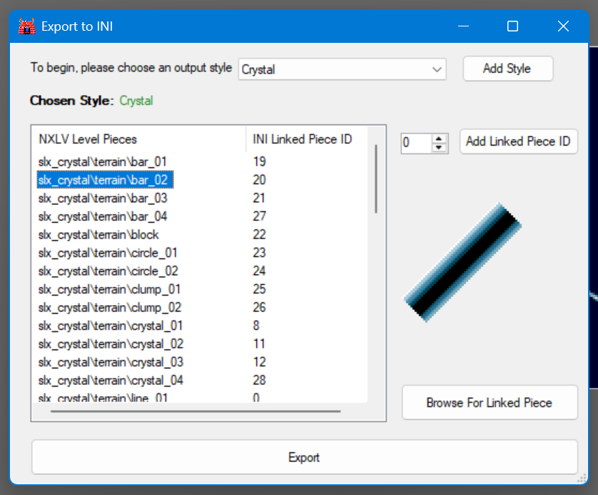 A step or two closer. We can now preview pieces when building a translation table, and it's possible to add the ID for each piece directly (if known), or by browsing to find the corresponding piece in the RetroLemmini styles folder (directory is remembered for each browse, so the process is fairly quick):