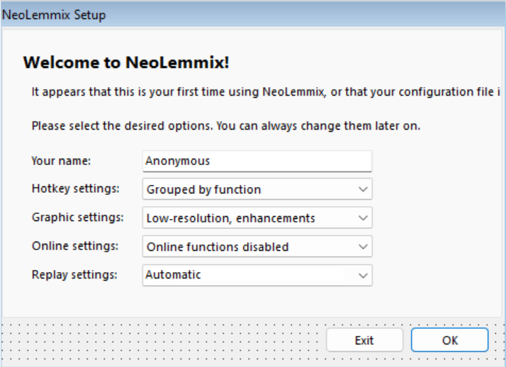This is the very least we could do: there's potential to expand the Welcome screen to add much more information about NeoLemmix. As it's the first thing new players see, we should aim to provide as much as we can here. It's possible to add graphics and stuff to jazz it up a bit and make it more engaging.