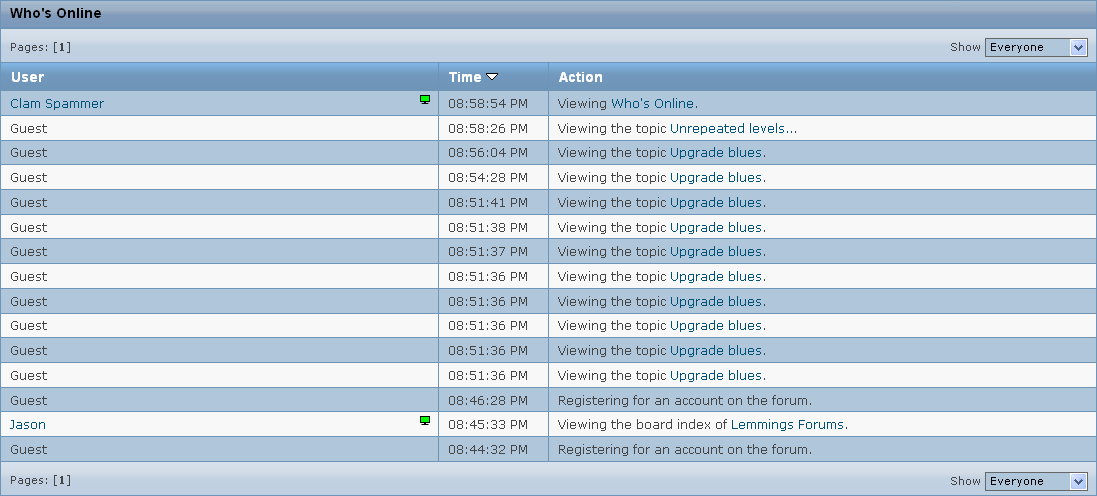 Anyway, I've spotted another issue. I'm not sure if this is related to the update, but whenever I make a post, we get a sudden influx of "guests" viewing the thread I just posted in. Is this a bug, or is there something suspicious going on? http://www.lemmingsforums.com/Smileys/lemmings/shocked.gif" alt=":o" title="Shocked" class="smiley" />