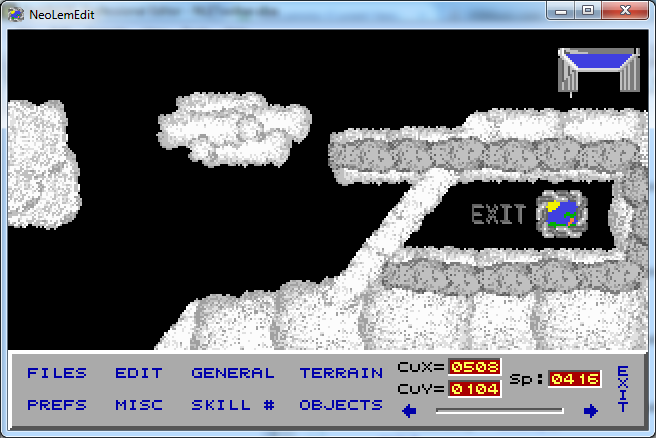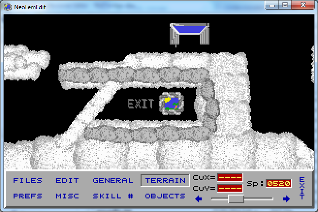 NeoLemEdit now boots to a blank level, and the menu option to load a LVL file now works (including that you can enter any file you want). =D Saving... I'll do it tomorrow. Done enough for tonight. Mostly that I can't be bothered doing the popup box to confirm you want to overwrite existing files, right now.