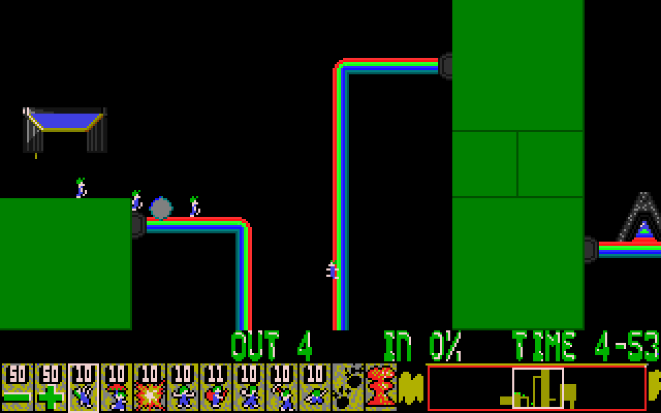 Well, apart from that the lemming fell onto the bit at the top, but after I moved the window one pixel left, it worked fine.