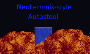 "NeoLemmix-style" Autosteel - this is the steel rendering method used in NeoLemmix; the steel area fits only the visible part of the steel, and, crucially, steel is always indestructable with this method. This is beneficial for knowing exactly whereabouts the steel areas are, but is inconsistent with the shape of the actual steel block (as marked by the yellow outline).