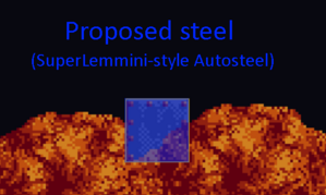 Here's what I propose - in the 1.43 editor, it's possible to make the steel areas fit the block exactly. This means that the steel blocks will be as "real world" consistent as possible, i.e. even if a steel block is partially hidden behind terrain, that part of it will still "exist" as steel. N.B. Since posting, I have discovered that this is exactly how SuperLemmini interprets "Autosteel" anyway, so it can be described as "SuperLemmini-style Autosteel" - image updated accordingly