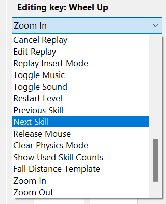 4) Here, you can set "Wheel Up" and "Wheel Down" to whatever function you wish. For skill browsing, choose "Next/Previous Skill" from the dropdown menu: